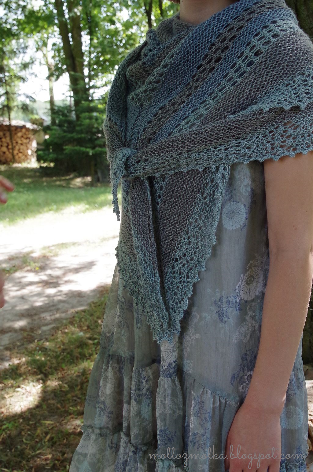 co? Zdecydowałam się zrobić po swojemu, prostą trójkątną chustę, z najłatwiejszym na świecie ażurem, a tylko na